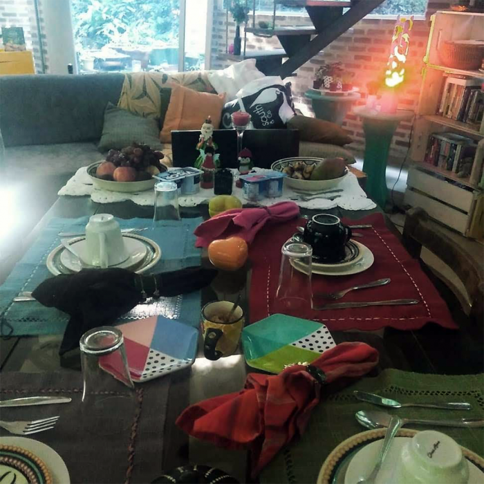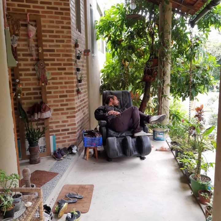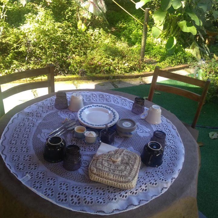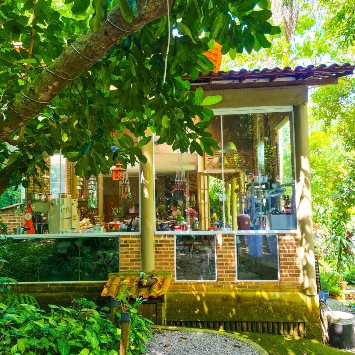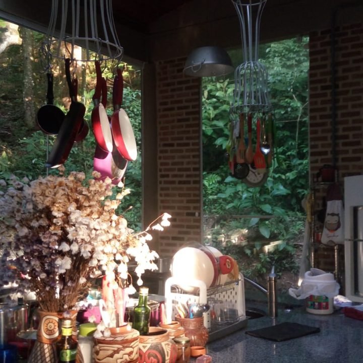 Almoçar sem hora pra sair da mesa, depois do almoço, sobremesa e um café com um segredinho rsrsrsr, podemos continuar à mesa com um joguinho bem interessante. “O que você faria?” ou ouvir sobre o outro e ainda poder deitar na rede, ou no futon e apreciar o verde. Tem uma cadeira deliciosa na varanda, aqui vai um segredo – É a minha cadeira da reflexão. E se desejar se desconectar, programe-se e venha dormir no paraíso, acordar com o “GALO”, passarinhos, riacho na porta e rodeado de verde.