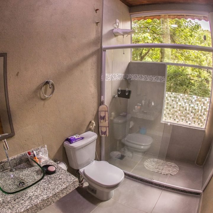 Até os banheiros tem janela para a Mata. Nosso relógio biológico reina aqui.