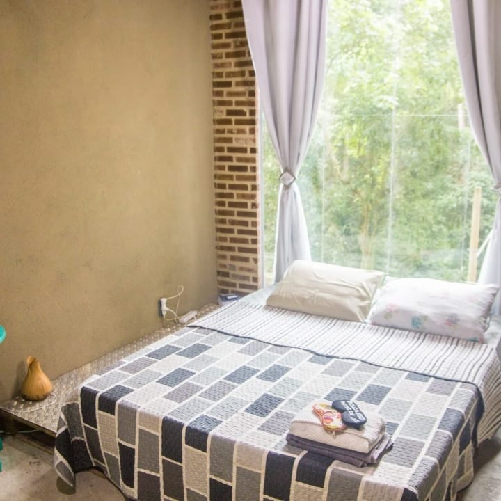 Aqui você será cheio de dengos, cada quarto tem um cheirinho diferente, se você necessitar de uma máscara para impedir que a claridade te incomode, temos umas lindas, meia para aquecer seu pezinho, sabonete liquido hidratante. Aquela massagem pra completar seu relaxamento, um cházinho de capim limão, um riacho para limpar seu campo energético, iogurte caseiro , kombucha para ajudar na limpeza interna. E uma linda piscina natural.