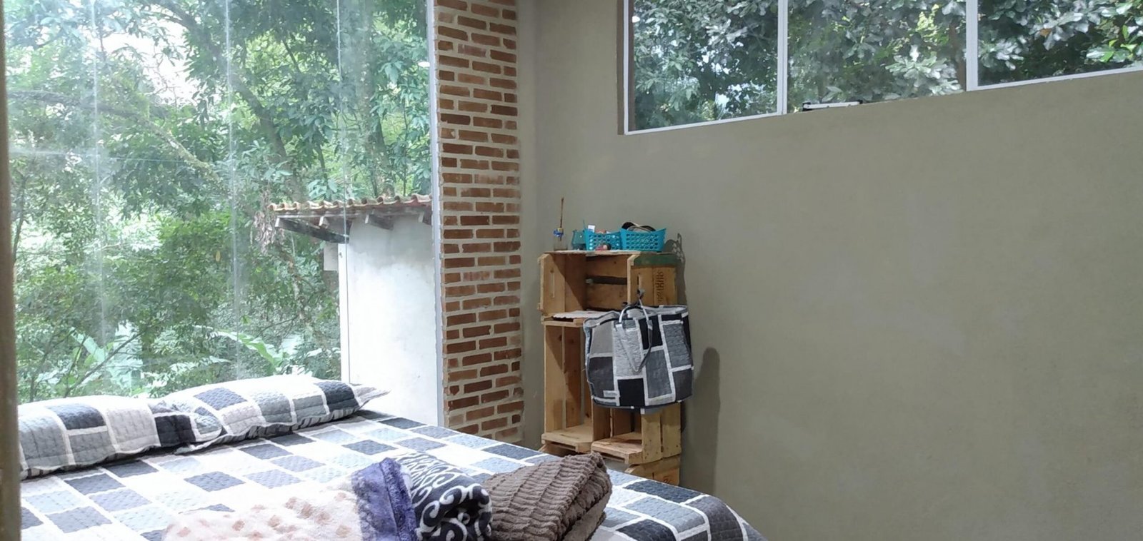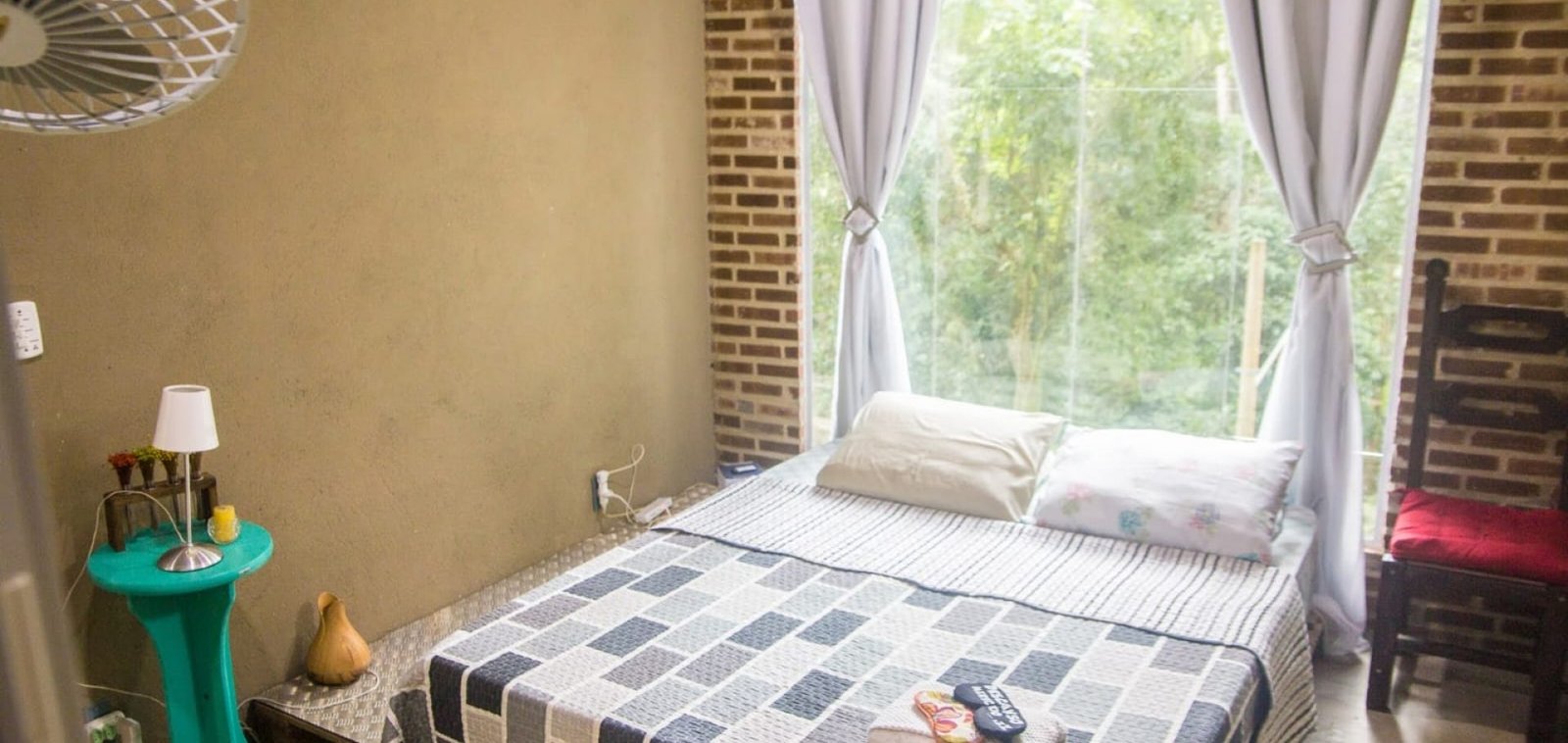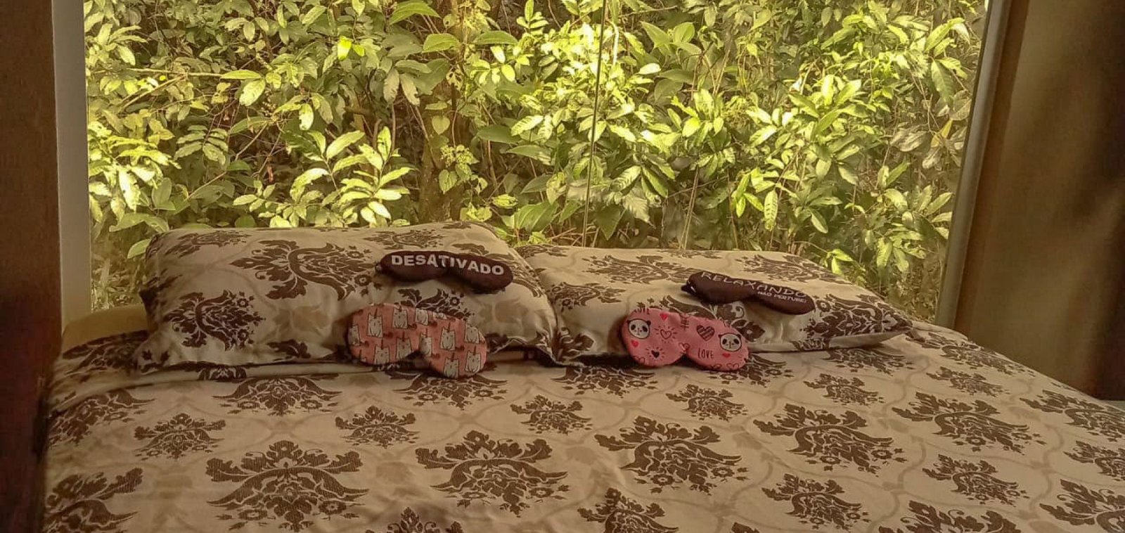 Aqui a floresta esta como adorno em qualquer cômodo, até nos banheiros temos uma visão privilegiada. A simplicidade nos acolhe lembrando que precisamos de bem pouco para viver, uma noite de bom sono, um despertar com cantos dos pássaros, tomar um café preparado com carinho tudo isto você encontrará.