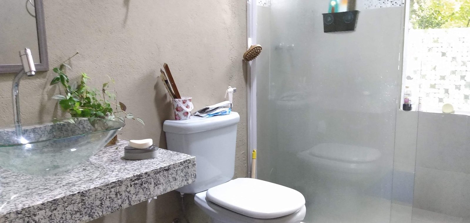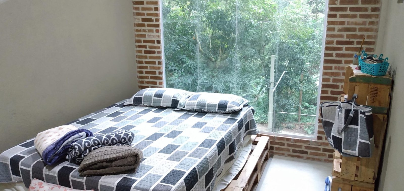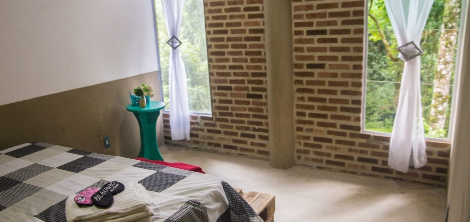 Aqui a floresta esta como adorno em qualquer cômodo, até nos banheiros temos uma visão privilegiada. A simplicidade nos acolhe lembrando que precisamos de bem pouco para viver, uma noite de bom sono, um despertar com cantos dos pássaros, tomar um café preparado com carinho tudo isto você encontrará.